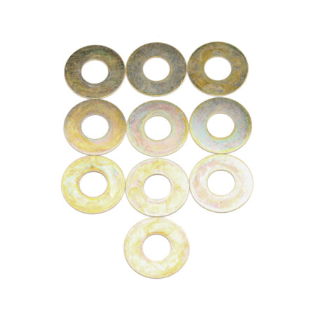 Caliper Shim kit for 7/16" diameter bolts. 10 quantity, 0.016” thick shims in a convenient kit.
