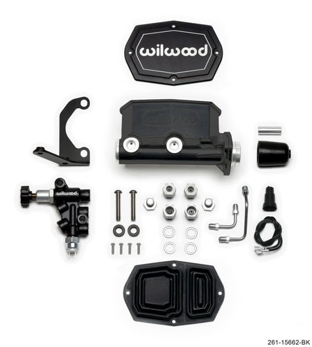 Wilwood Compact Tandem M/C - 1.12in Bore w/RH Bracket and Valve - Black